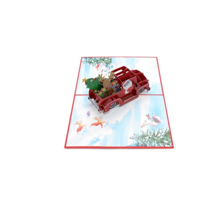 KIRIORI POP-UP Поздравителна картичка "Дядо Коледа с кола" , 1бр