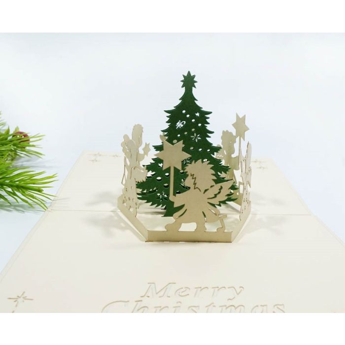 KIRIORI POP-UP Поздравителна картичка "Елха с ангелчета", 1бр