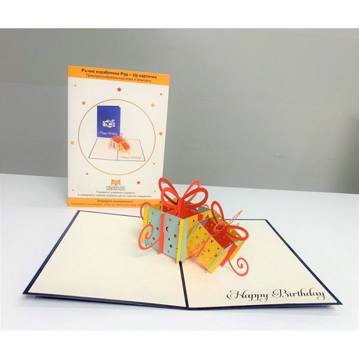 KIRIORI POP-UP Поздравителна картичка "ПОДАРЪК"