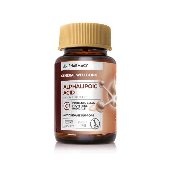 Съставки: алфа липоева киселина, микрокристална целулоза (пълнител), хидроксипропил метилцелулоза (сгъстител), магнезиеви соли на мастни киселини (антислепващ агент), гума джелан (сгъстител), рибофлавин, пиридоксин хидрохлорид, тиамин хидрохлорид, титаниев диоксид (оцветител).