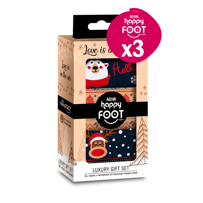 КОМПЛЕКТ HAPPY FOOTTOPIA ЧОРАПИ ЗИМА МЕЧКА, ЕЛЕН 39-42, 3 БР В КУТИЯ