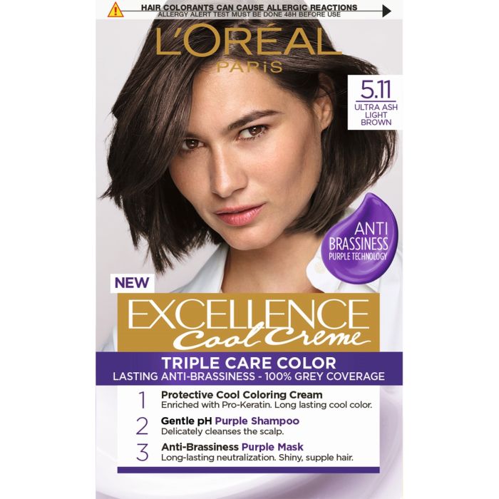 Новата колекция Excellence Cool Creme за студени нюанси без нежелани жълти и оранжеви оттенъци. Дълготраен ефект до 4 седмици, благодарение на новия лилав шампоан и неутрализираща лилава маска за цвят, който остава студен задълго.
