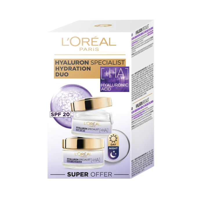 L'OREAL PARIS HYALURON SPECIALIST Дуо пакет дневен крем за лице 50мл + нощен крем за лице 50мл