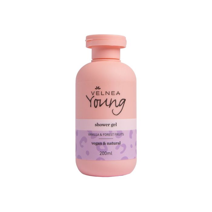 Velnea Young душ гел Vanilla & Forest Fruit нежно почиства и освежава кожата, оставяйки я мека, чиста и освежена. Обогатен с екстракт от боровинка, известна със своите успокояващи, релаксиращи и подхранващи свойства, този гел интензивно хидратира и внимателно се грижи за кожата, помагайки ѝ да запази естествения баланс и влажност. Насладете се на нежния аромат на кремава ванилия и сочни горски плодове и превърнете ежедневния душ в релаксиращ и освежаващ ритуал.
