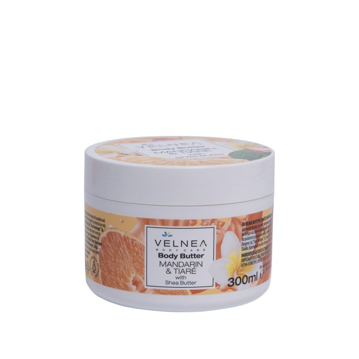 Маслото за тяло от мандарина и тиаре VELNEA е специално формулирано с масло от шеа и сладки бадемово масло за ежедневна грижа за кожата.