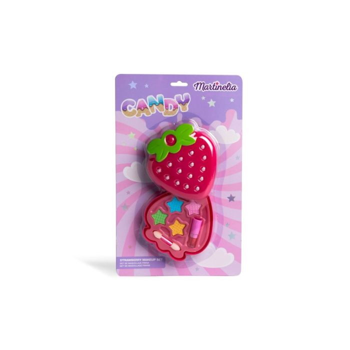 Зарадвайте вашите малки принцеси с Candy Strawberry Makeup комплект – детска мултипалитра с форма на ягода, която включва 4 различни цвята сенки за очи в компактен формат, 1 червило и апликатор за нанасяне.