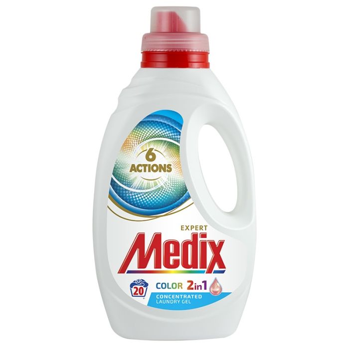 MEDIX 6 Actions e концентриран перилен препарат със специална комбинация от активни съставки, които осигуряват отлично изпиране с 6 действия: