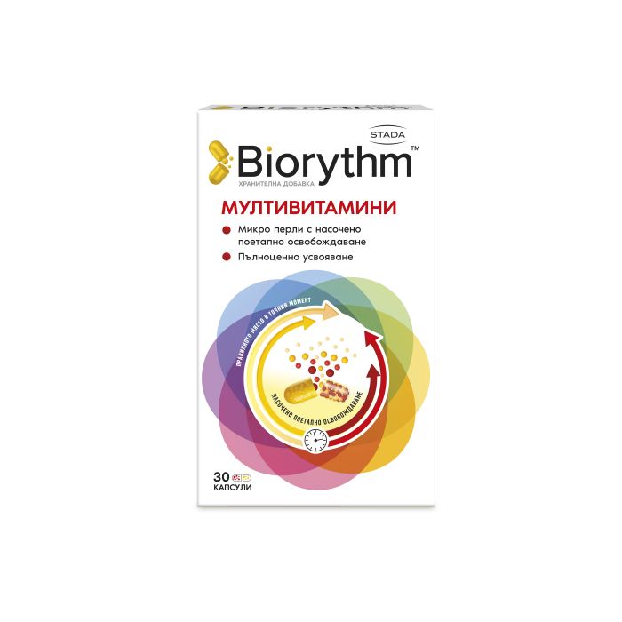 BIORYTHM® Мултивитамини е мултивитаминен комплекс, осигуряващ дневните нужди на организма от витамини, минерали и микронутриенти. BIORYTHM® Мултивитамини съдържа всички 13 витамина и подбрани минерали и антиоксиданти в балансирана формула.