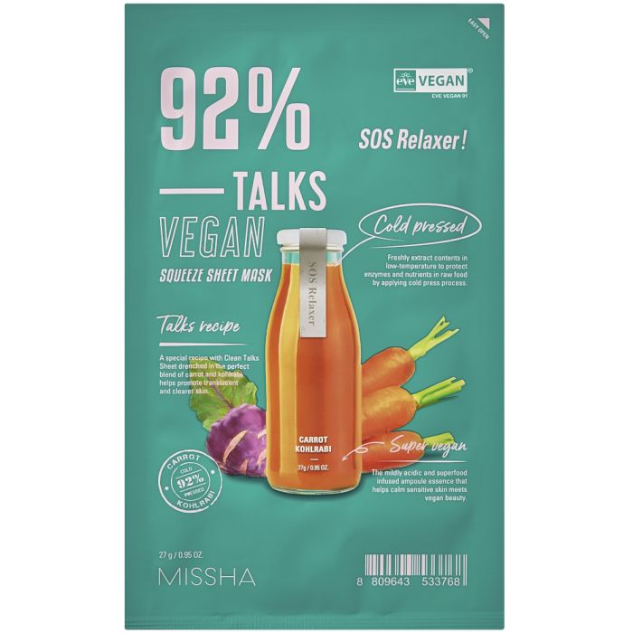 MISSHA TALKS VEGAN SQUEEZE Маска за лице SOS RELAXER, 27гр.