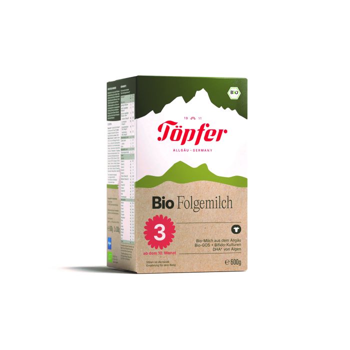 Преходно Био мляко от началото на 10-тия месец на марката Тьопфер. Тройната комбинация PLUS 3 в млякото Лактана Био 3 съдържа: пълноценно биологично мляко; прoбиотици на базата на 4 вида репродуктивни и естествени Бифидобактерии, (B. breve, B. infantis, B. longum и B. bifidum), които образуват здрава чревна флора, намаляват нивото на нежеланите чревни бактерии и укрепват имунната система, и незаменими Докозахексаенова киселина (DHA) и Алфа-линоленова киселина (Омега-3) (ALA), които подпомагат развитието на мозъка, нервната система и зрението. Съставът е обогатен с витамин D и йод, които подпомагат когнитивното развитие на детето. Млякото е произведено в съответствие със стандартите на Европейския Регламент за биологичното производство. Използвано е пълноценно биологично мляко и други съставки от биологичен произход.