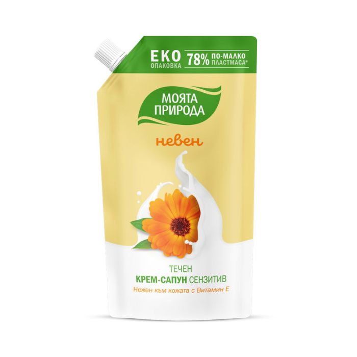 МОЯТА ПРИРОДА Течен крем-сапун сензитив невен пълнител, 600 мл.