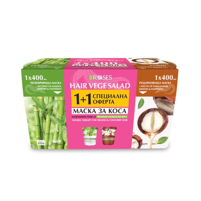МАСКА МАКАДАМИЯ: Подхранваща и предпазваща цвета маска VEGE SALAD с 96% натурален състав. Храна за сетивата и косата със 100% натурално масло от макадамия, биотин и пантенол.