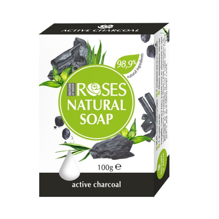Натурален сапун Nature of Agiva ROSES, обогатен с активен въглен. Студено пресован, богат на растителни масла и глицерин, за допълнителна хидратация и копринено гладка кожа. Храна за сетивата и баланс на емоциите, с нежен аромат.