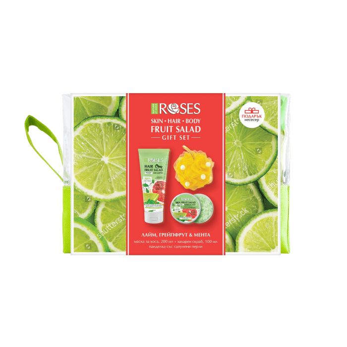 Ароматна панделка със сапунени перли ROSES “BODY FRUIT SALAD” 100% ПЛОДОВА САЛАТА ЗА ЖАДНА КОЖА с аромат на манго, киви и авокадо. Вградените ароматни перлички от сапун образуват богата и нежна почистваща пяна. Храна за сетивата и кожата със 100% завладяващи плодови аромати.
