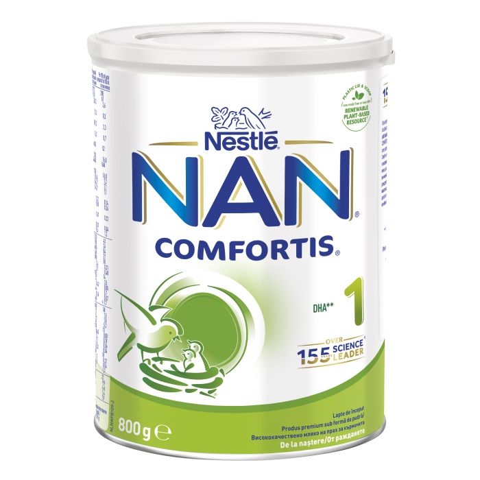 Nestl_ NAN Comfortis 1 e висококачествено мляко за кърмачета от момента на раждането, които не се кърмят. Преди да решите да използвате мляко за кърмачета се консултирайте с Вашия педиатър.Вдъхновени от 60 години изследвания на майчината кърма нашите експерти създадоха NAN Comfortis 1 с уникално съдържание:OPTIPRO е специална технология, която оптимизира (усъвършенства) протеините, както по отношение на качество, така и по отношение на количество.L. reuteri* - с пробиотична култура, естествено съдържаща се в кърмата. С деликатни фибри - FOS/GOS. Съдържа DHA - съгласно изискванията на Регламент (ЕО) 2016/127, сега в двойно количество в сравнение с предишната рецепта. Лактоза - единственият въглехидрат в NAN Comfortis Важно е да се грижите за за стомашния комфорт на Вашето бебе от момента на раждането.