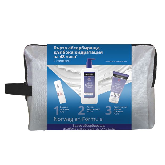 NEUTROGENA NORWEGIAN FORMULA Комплект Крем за ръце, 75 мл + Балсам за устни, 4,8 г + Лосион за тяло, 400 мл + несесер