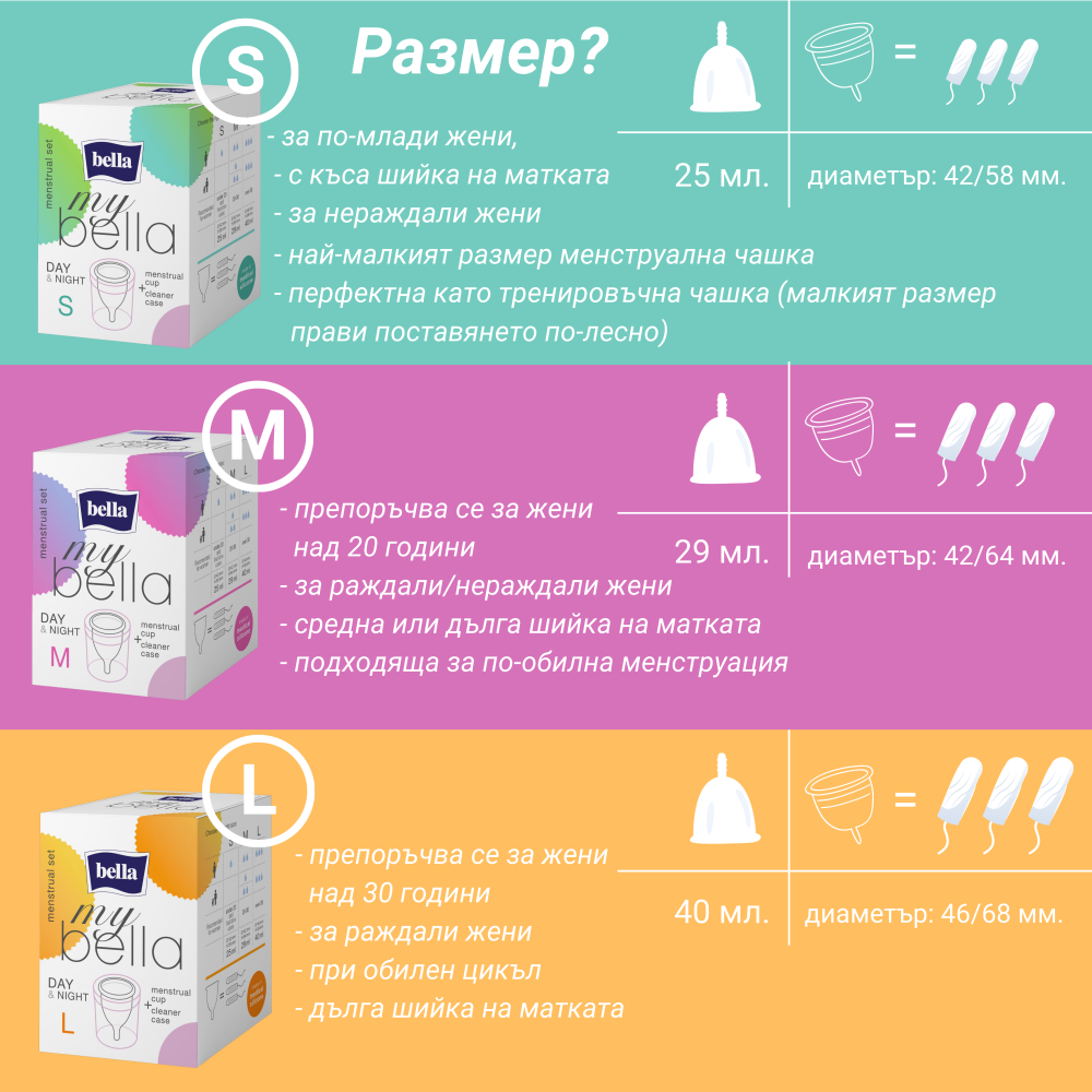 Всичко зависи от интензивността на менструалния цикъл. При много интензивен цикъл чашката трябва да се изпразва на всеки 3–5 часа. Когато цикълът е по-лек, можете да я използвате до 12 часа. Това обаче е максималният срок – не го превишавайте, за да поддържате добра хигиена и да предпазите здравето си.