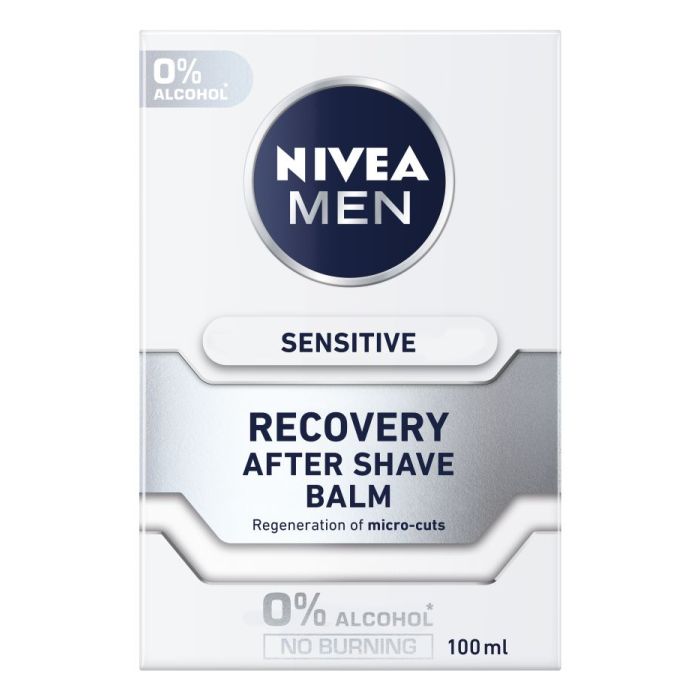 Новият NIVEA MEN Балсам за след бръснене Sensitive Recovery не съдържа алкохол* и помага на кожата да се възстанови след бръснене. Успокояващата му формула е обогатена с натурална лайка и растителен екстракт.