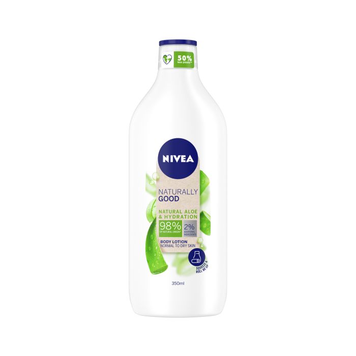 Естествени и свежи съставки, отговорен и устойчив начин на живот и повече време, прекарано сред природата: в днешно време обръщаме все повече внимание на това да правим добри неща - за себе си и за околната среда. Това е нещо, което не бива да пренебрегваме, когато става въпрос за грижата за кожата ни. Новият Лосион за тяло Naturally Good Aloe съдържа 98% съставки от естествен произход и 2% съставки, които осигуряват безопасността и стабилността на формулата на най-високите дерматологични изисквания. В същото време грижовната формула осигурява до 48ч. хидратация на кожата.