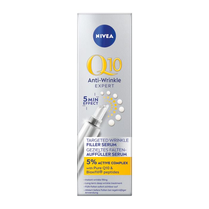 Бързоабсорбираща се формула, обогатена с чист Q10, Bioxifill® пептиди и активни анти-ейдж съставки, която прониква в кожата на дълбочина 10 слоя*, за да стимулира производството на колаген и да се бори с дълбоките бръчки отвътре**