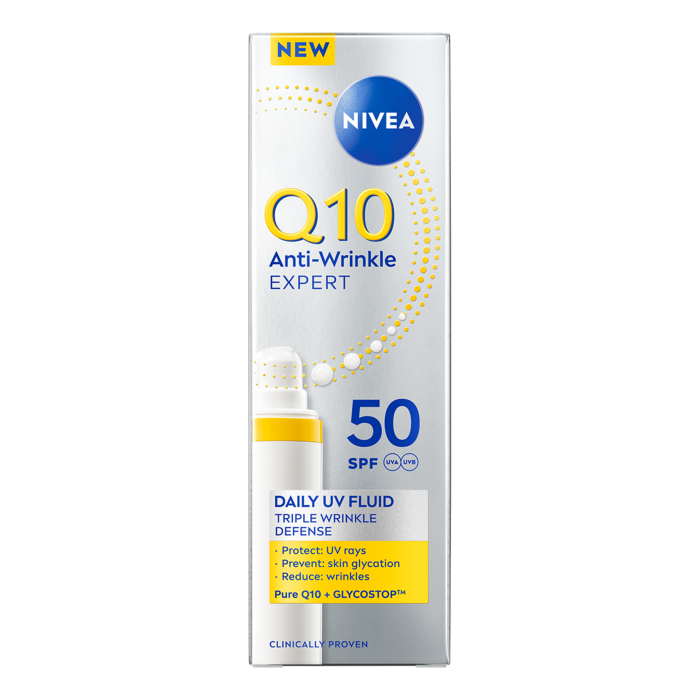 Потребителите ще забележат подобрена хидратация, мекота и гладкост още от първото нанасяне. До втората седмица от употребата на NIVEA Q10 Expert Дневен флуид SPF50 против бръчки, 76% от жените съобщават, че виждат намаляване на фините линии и бръчки. На четвъртата седмица защитната система на кожата е значително подсилена.