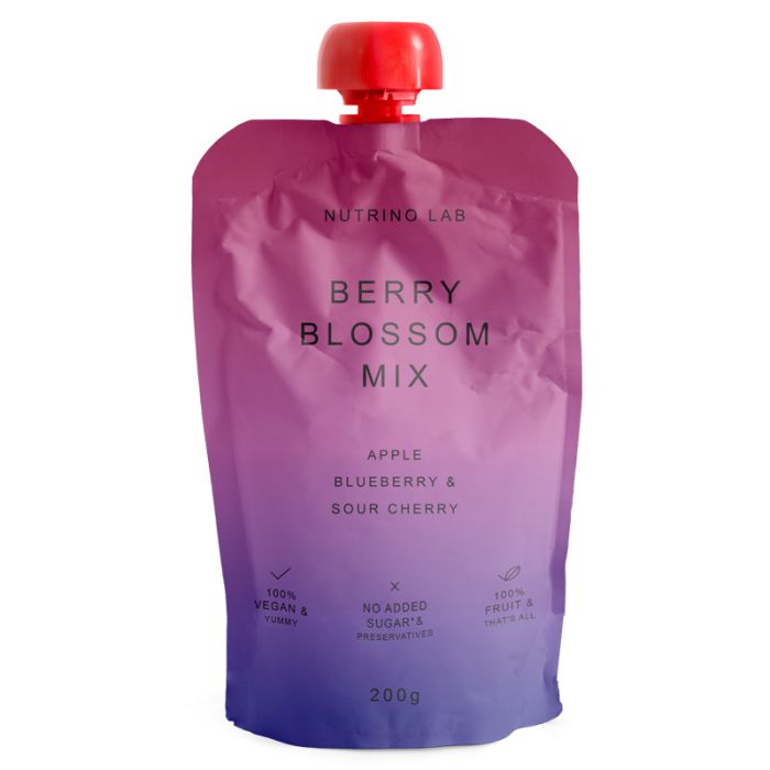 NUTRINO LAB Плодово пюре микс от Ябълка, Боровинки, Вишни, 200 гр.