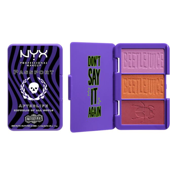 Тази палитра съдържа три нюанса, включително три ружа, всеки от които е подходящ за различни тонове на кожата. Тези нюанси ще събудят цветния дух у вас. Вдъхновена от новия филм BEETLEJUICE BEETLEJUICE: достъпен само в кината.