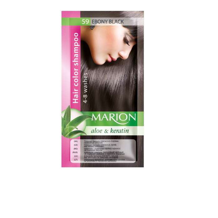 Оцветяващите шампоани „Marion“ са изключителен и сигурен продукт за оцветяване на коса въз основа на директно оцветяване. Не съдържат амоняк или пероксид. Екстрактът от алое придава на косъма красив, ярък цвят и естествен блясък. Съдържа кератин. Косата се стилизира по лесно, а защитата от UV лъчите предпазва косата от вредното влияние на слънчевите лъчи. Цветът се задържа върху косата за 4-8 измивания, което зависи от времето на боядисване, указано в инструкциите.