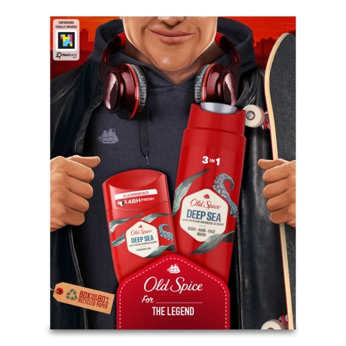 Old Spice Deep Sea Shower Gel е душ-гел за тяло, предназначен специално за мъже, който почиства кожата, оставяйки я гладка, мека и добре освежена. Душ-гелът има свеж аромат, напомнящ за прохладен бриз, идващ от океана. Специалната формула е обогатена с морска сол, която регенерира кожните клетки, подобрява еластичността и изглажда кожата. Освен това действа тонизиращо и енергизиращо и помага за премахване на натрупаното напрежение и стрес. Олд Спайс Дийп Сий Душ-гел за мъже деликатно, но дълбоко почиства кожата на тялото от всякакви замърсявания, без да я изсушава. Леката текстура на душ-гела, образува деликатна пяна, която обгръща тялото с освежаващо ухание. След употребата му кожата e чиста, мека, еластична и деликатно ароматизирана. Без парабени. Дерматологично тестван продукт.