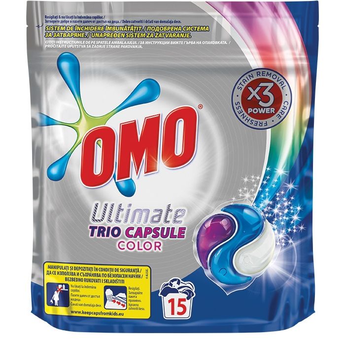 ОМО ULTIMATE Течни капсули трио за цветно пране, 15бр.
