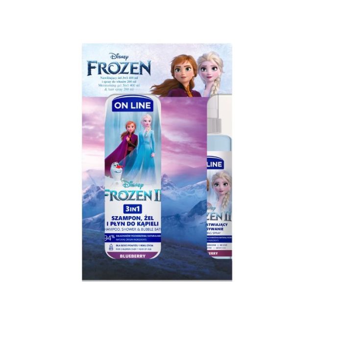 ON LINE DISNEY Комплект шампоан Princess Frozen, Душ-гел и пяна за ваня 3в1, 400 мл + Спрей за разресване наа коса, 200 мл