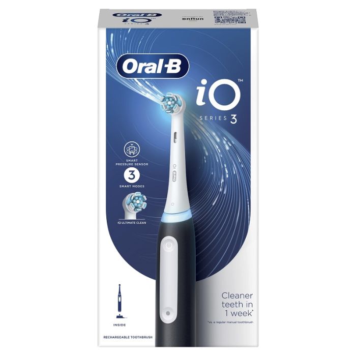Съдържание: 1 iO3 електрическа четка за зъби, 1 глава за четка за зъби, 1 зарядно устройство, 1 калъф за пътуване