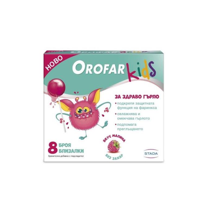 OROFAR KIDS Близалки за гърло, малина, 8 бр / опаковка