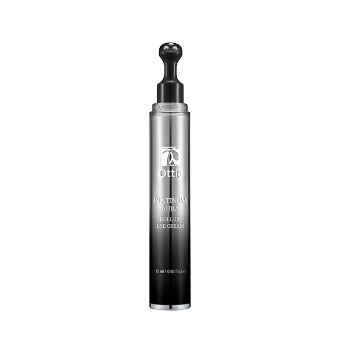 Ottie Platinum Aura Roll - up Eye Cream, Крем - ролер за околоочен контур, с вграден метален масажен ролер, който мигновенно охлажда при нанасяне, като спомага за намаляване на подпухналостта в зоната около очите. Изглажда и намалява видимите бръчки в околоочната зона, като я прави да изглежда свежа и подмладена. Богата и концентрирана формула от хайвер, платина и идебенон.