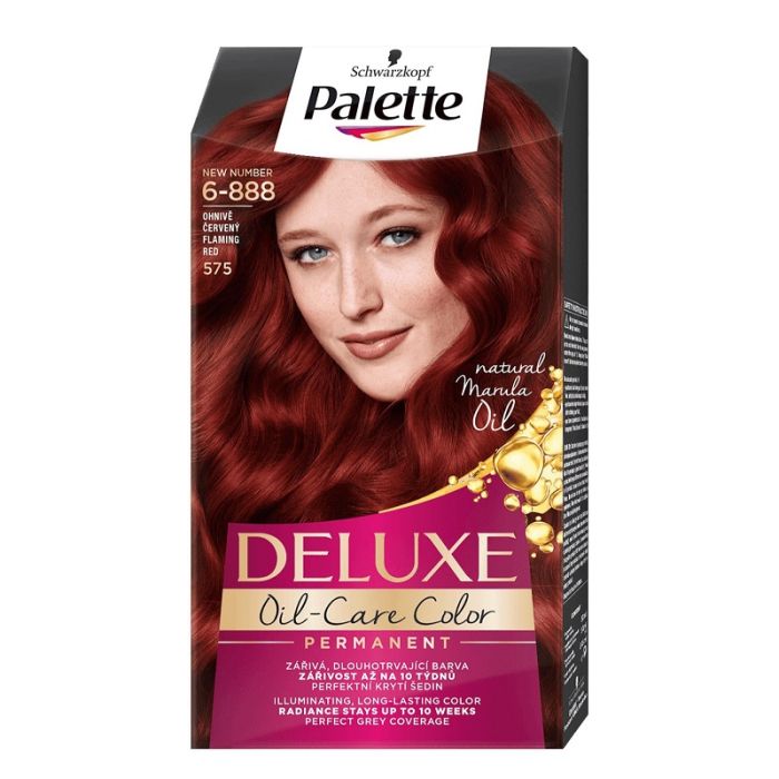 Боята за коса Schwarzkopf Palette Deluxe има висока концентрация на цветни пигменти, с което осигурява дълготраен резултат до 10 седмици. В комплекта има и грижовна маска с масло от марула, което има благоприятно действие върху косата- заглажда повърхността на фибрите на косъма и ? придава сензационен блясък. Формулата на Schwarzkopf Palette Deluxe осигурява безупречни резултати от корените до върховете и успешно покрива белите коси.