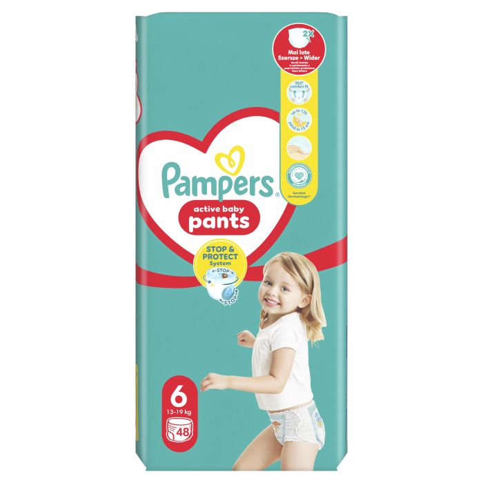 Веднага след като Вашето бебе започне да се движи, то е малък шампион, който се търкаля, протяга се и се катери, за да открие света. То се нуждае от нашите НАЙ-ДОБРИ гащички, устойчиви на протичане: с джоб Stop & Protect, еластичната лента, която приляга по тялото, и двойните маншети на крачетата помага за предотвратяване на протичания, а супер абсорбиращото ядро попива мигновено влагата, за до 12 часа пълна защита срещу протичане. Както всички наши гащички, Pampers Pants също се сменят лесно, дори докато бебето Ви ходи: слагат се с едно движение, разкъсват се отстрани за лесно сваляне, навиват се и се залепват със залепващите ленти за лесно изхвърляне. Точно като Вас, Pampers поставя безопасността на Вашето бебе преди всичко: Pampers Pants са дерматологично тествани и съдържат 0% алергени от парфюми на ЕС (съгласно разпоредбите, определени в Регламент № 1223/2009 относно козметичните продукти). Одобрени са от дерматолози от Алианса за здраве на кожата и са тествани и сертифицирани по Стандарта 100 от OEKO-TEX.