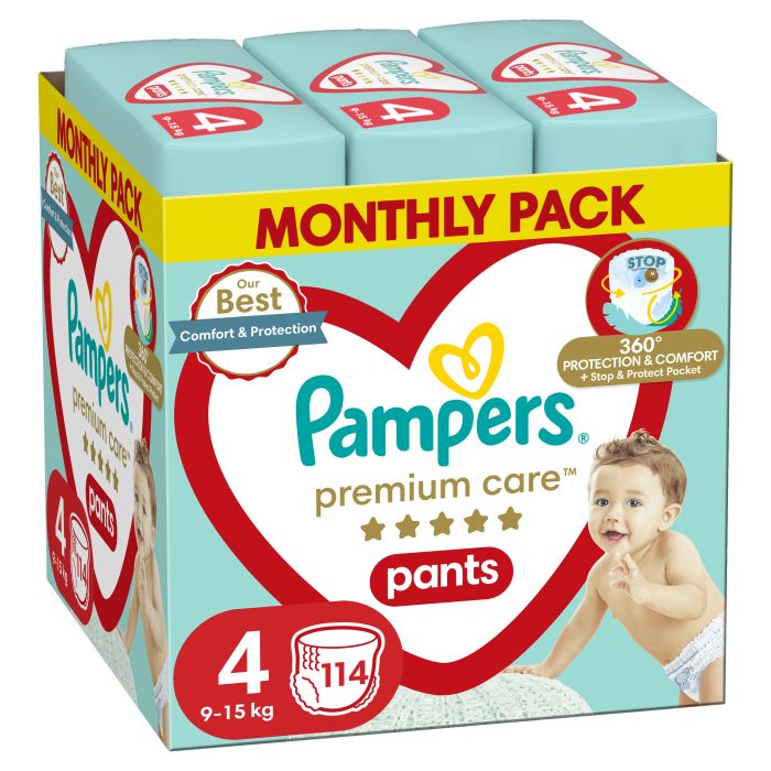 Подарете на Вашето бебе комфорт и защита от Pampers с гащичките Pampers Premium Care Pants! Сега с революционен джоб Stop & Protect, който помага за предотвратяване на протичанията откъм гърба, за пълна защита от протичане до 12 часа. Тъй като Вашето бебе става по-активно, ще имате нужда от пелена, която осигурява удобно прилягане и сигурна защита, така че бебето да може да се справи с всяко движение. Ето защо гащичките Pampers Premium Care Pants предлагат оптимални комфорт и защита, с удобно прилягане навсякъде благодарение на ултра меките и еластични материали, които се адаптират към тялото на бебето. Както всички гащички, Pampers Premium Care Pants се сменят лесно: просто издърпайте внимателно, отстранете, като разкъсате страните, навийте на руло и залепете за лесно съхранение, дори когато бебето се движи енергично. Точно като Вас, Pampers поставя безопасността на Вашето бебе преди всичко: Гащичките Pampers Premium Care Pants са дерматологично тествани и съдържат 0% ароматни алергени на ЕС (съгласно разпоредбите на Регламент на ЕС № 1223/2009 относно козметичните продукти). Одобрени са от дерматолози от Алианса за здраве на кожата като безопасни за бебешката кожа.