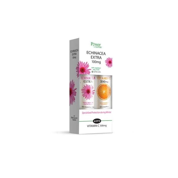 PОWER OF NATURE Ехинацея екстра 24 табл+ Витамин С 500мг. 20табл с Медицинска стевия