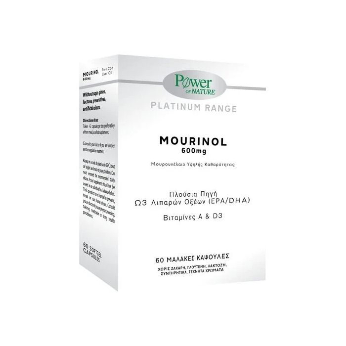„ Муринол “ е хранителна добавка с 600mg чисто масло от черен дроб на треска в капсула, което е богат източник на омега-3 полиненаситени мастни киселини (EPA/DHA*),както и на витамините A и Д3. Проучвания доказват изобилие от ползи на маслото от дроб от треска, като понижаване на лошия холестерол, предотвратяване и лечение на диабет, понижаване на високо кръвно налягане, намаляване на риска от автоимунни заболявания и др. Витамините, от своя страна, допринасят за подсилването на имунната система, като витамин А помага за поддържане на нормално зрение и състояние на кожата, а витамин Д3 помага за поддържане на нормалното състояние на костите и мускулната функция.