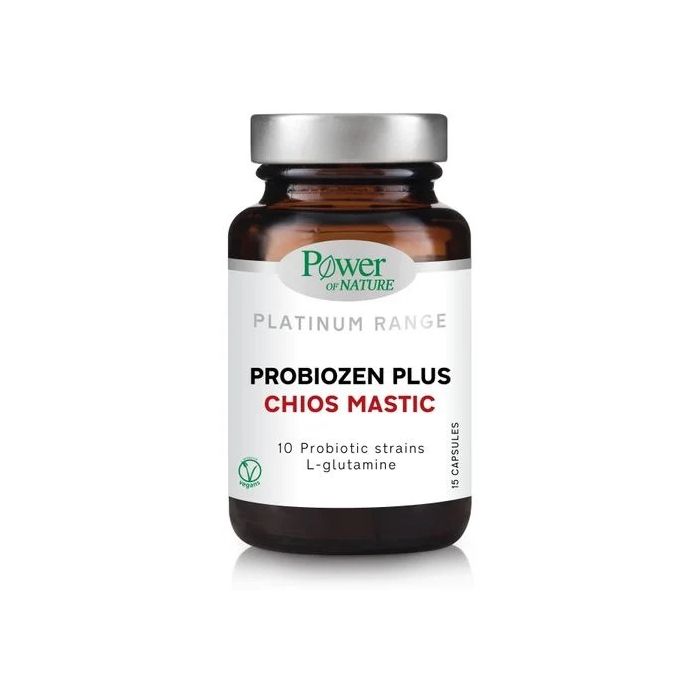 Probiozen plus Chios Mastic комбинира 10 пробиотични щама с мастика от Хиос, глутамин и цинк. Мастиката от Хиос е естествена ароматна смола от мастиковото дърво и е широко известна със своите полезни свойства.