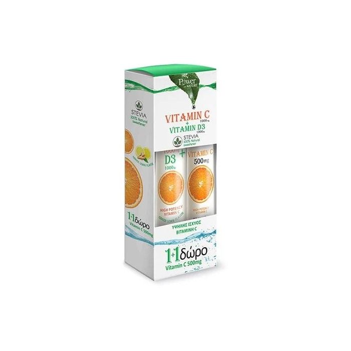 POWER OF NATURE Витамин С 1000мг. D3 1000iu 24табл.+Витамин С 500мг. 20 табл. с медицинска стевия