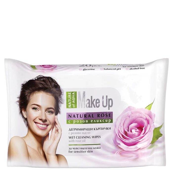 NATURE OF AGIVA Мокри кърпички за почистване на грим rose oil, 20 бр.