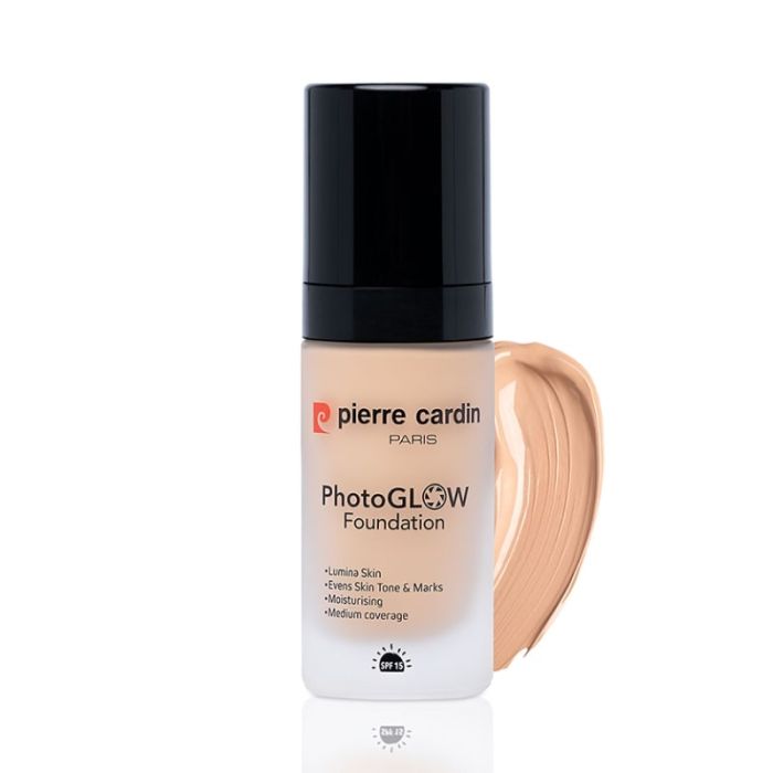 Pierre Cardin Photoglow е фон дьо тен, който помага за премахване на дефекти по кожата и тонизира неравенството със специалната си формула и средно покритие. Той изравнява тоновете и белезите на кожата и дава ежедневна хидратация.