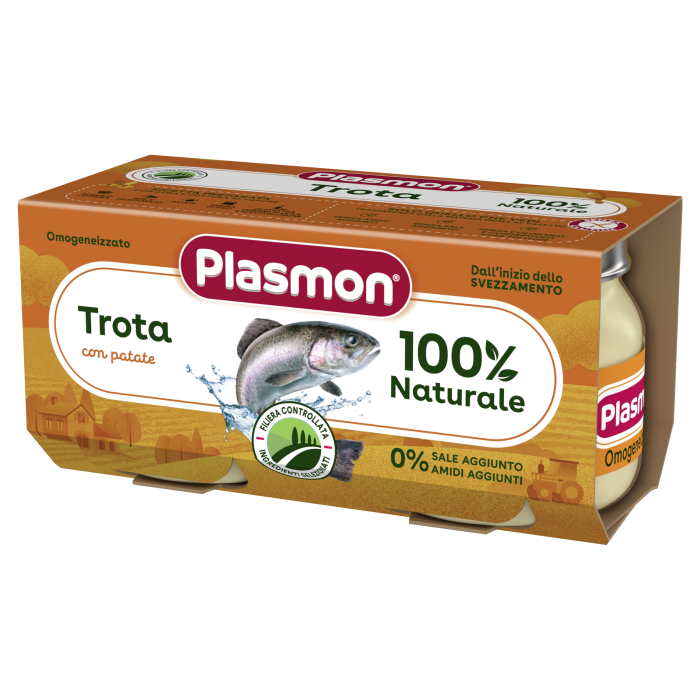 -Избрани съставки: Хомогенизираните рибни продукти на Plasmon съдържат само натурални съставки като италианска пъстърва от селектирани ферми и италиански екстра върджин зехтин.