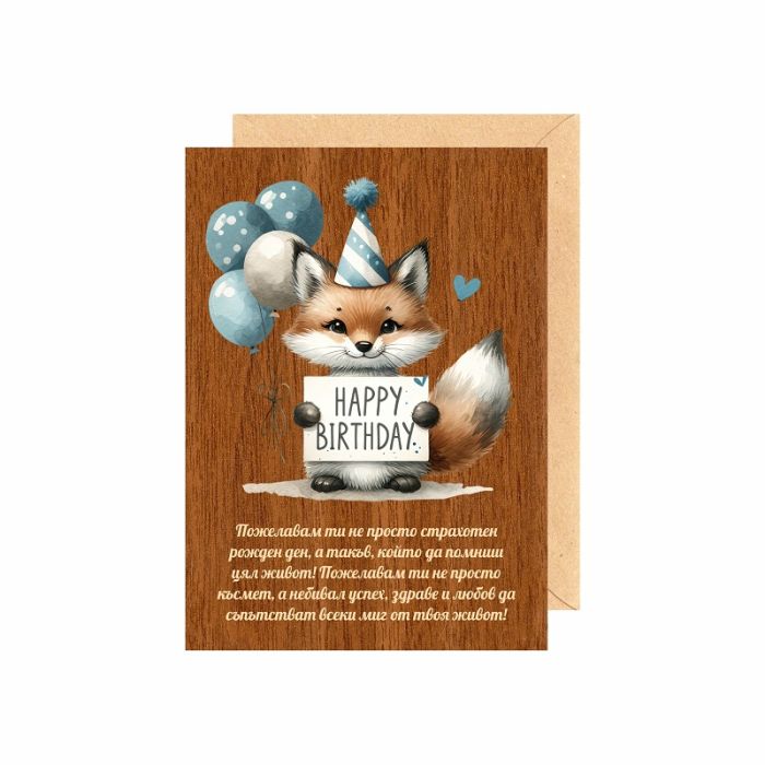 Поздравителна картичка от дърво цветна '' ЧРД '', 1бр