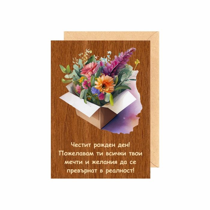 Поздравителна картичка от дърво цветна '' ЧРД'', 1бр
