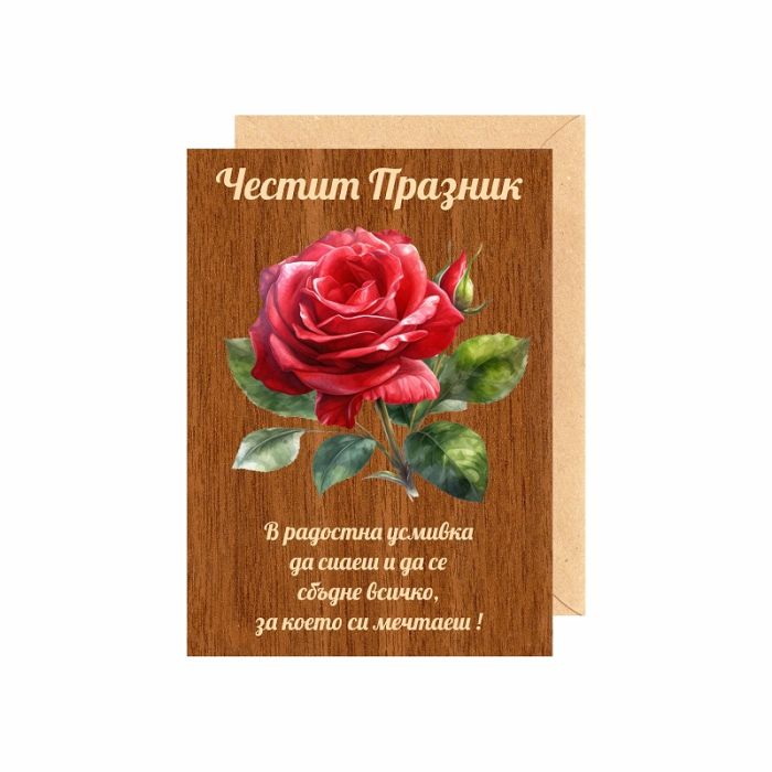 Поздравителна картичка от дърво цветна '' Роза '', 1бр