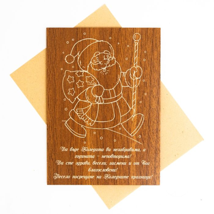 Поздравителна картичка от дърво ''Весела Коледа '' , 1бр