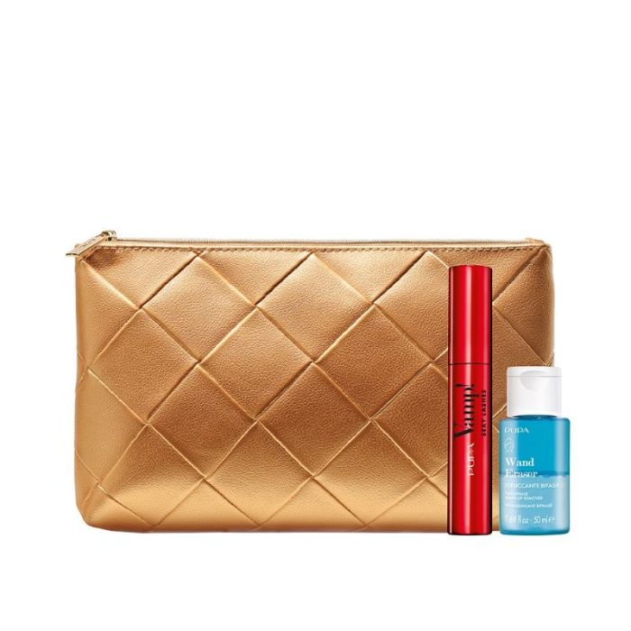 PUPA KIT VAMP! Комплект спирала за обем и извит ефект 12 мл. и двуфазен лосион за почистване на грим ,50 мл. в несесер