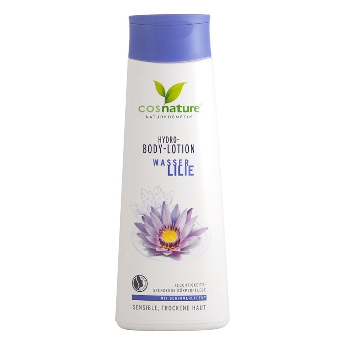 Хидро-лосионът за тяло Водна лилия на cosnature® съдържа внимателно подбрани растителни масла и е специално разработен за суха и чувствителна кожа. Лосионът съдържа също успокояващо алое вера - от био земеделие, както и екстракт от водна лилия и снабдява кожата с влага за минимум 24 часа. Благодарение на маслата от жожоба и карите, кожата става копринено мека и еластична. Лосионът попива бързо, не е мазен и придава на кожата великолепен аромат.